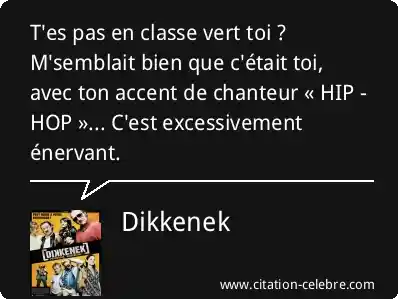 T'es pas en classe vert toi ? M'semblait bien que c'était toi, avec ton accent de chanteur « HIP - HOP »... C'est excessivement énervant.