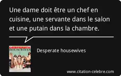 Citation  Desperate housewives cuisine : Une dame doit être un chef en cuisine, une servante... (la mère de Mike - film & série)