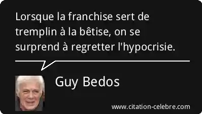 Cette formule de Guy Bedos exprime un paradoxe moral : l'hypocrisie, normalement considérée comme un défaut, peut devenir préférable à une franchise malavisée. En d'autres termes, si le fait de dire la vérité sans filtre (la franchise) est utilisé comme une excuse pour être blessant, stupide, ou complètement dénué de tact (la bêtise), alors on regrette la courtoisie et la réserve (l'hypocrisie) qui auraient permis d'éviter le mal.