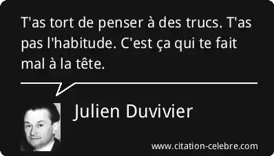 T'as tort de penser à des trucs. T'as pas l'habitude. C'est ça qui te fait mal à la tête.