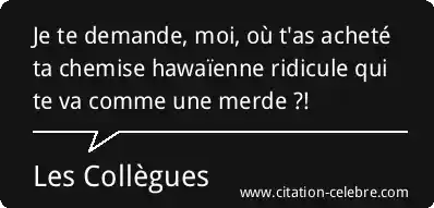 Je te demande, moi, où t'as acheté ta chemise hawaïenne ridicule qui te va comme une merde ?!