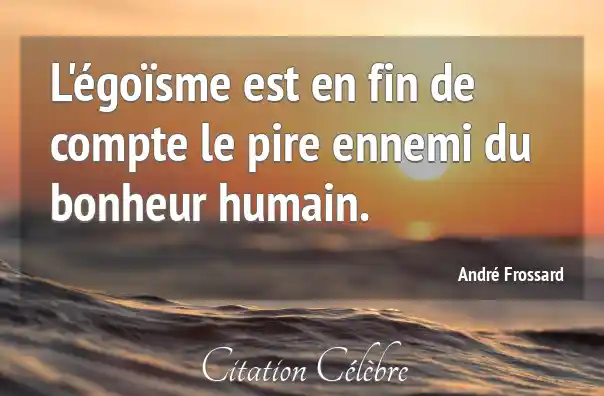 L'égoïsme est en fin de compte le pire ennemi du bonheur humain.