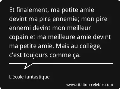Et finalement, ma petite amie devint ma pire ennemie; mon pire ennemi devint mon meilleur copain et ma meilleure amie devint ma petite amie. Mais au collège, c'est toujours comme ça.