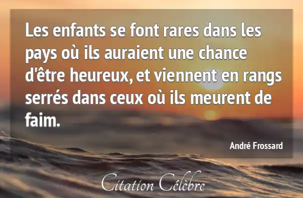 Les enfants se font rares dans les pays où ils auraient une chance d'être heureux, et viennent en rangs serrés dans ceux où ils meurent de faim.