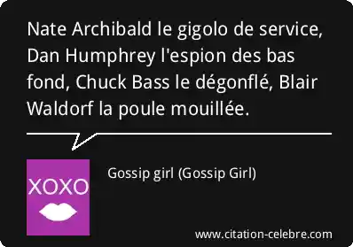 Nate Archibald le gigolo de service, Dan Humphrey l'espion des bas fond, Chuck Bass le dégonflé, Blair Waldorf la poule mouillée.