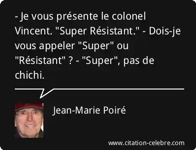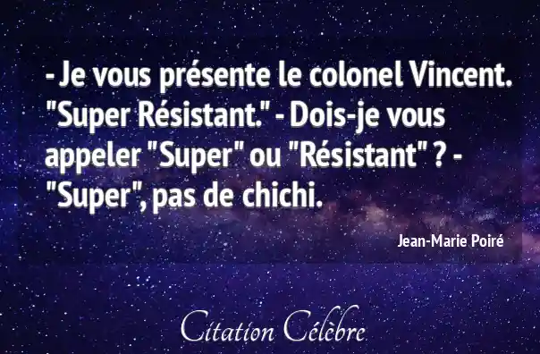 - Je vous présente le colonel Vincent. "Super Résistant." - Dois-je vous appeler "Super" ou "Résistant" ? - "Super", pas de chichi.