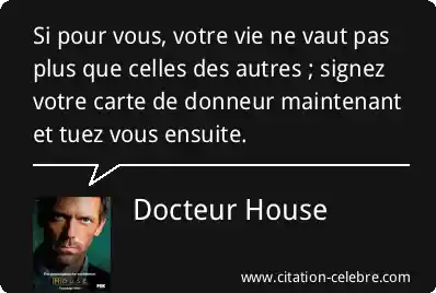 Si pour vous, votre vie ne vaut pas plus que celles des autres ; signez votre carte de donneur maintenant et tuez vous ensuite.