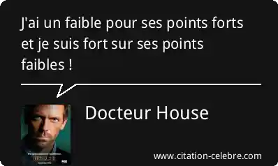 J'ai un faible pour ses points forts et je suis fort sur ses points faibles !