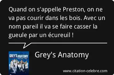 Quand on s'appelle Preston, on ne va pas courir dans les bois. Avec un nom pareil il va se faire casser la gueule par un écureuil !