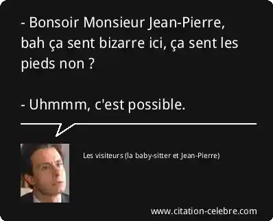 - Bonsoir Monsieur Jean-Pierre, bah ça sent bizarre ici, ça sent les pieds non ? - Uhmmm, c'est possible.