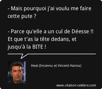 - Mais pourquoi j'ai voulu me faire cette pute ? - Parce qu'elle a un cul de Déesse !! Et que t'as la tête dedans, et jusqu'à la BITE !
