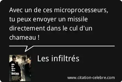 Avec un de ces microprocesseurs, tu peux envoyer un missile directement dans le cul d'un chameau !