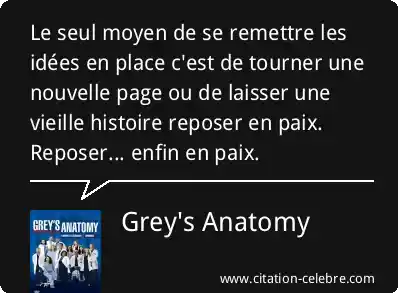 Le seul moyen de se remettre les idées en place c'est de tourner une nouvelle page ou de laisser une vieille histoire reposer en paix. Reposer... enfin en paix.