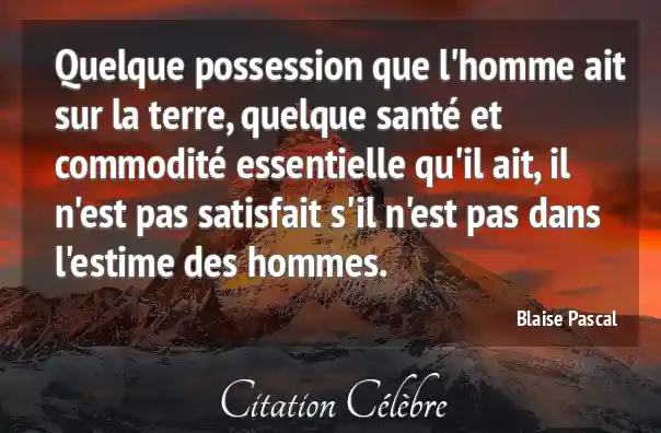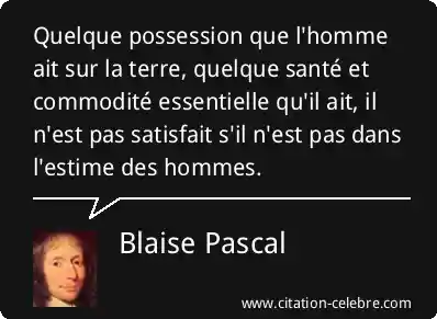 Quelque possession que l'homme ait sur la terre, quelque santé et commodité essentielle qu'il ait, il n'est pas satisfait s'il n'est pas dans l'estime des hommes.