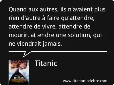 Quand aux autres, ils n'avaient plus rien d'autre à faire qu'attendre, attendre de vivre, attendre de mourir, attendre une solution, qui ne viendrait jamais.
