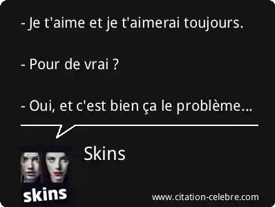 - Je t'aime et je t'aimerai toujours. - Pour de vrai ? - Oui, et c'est bien ça le problème...