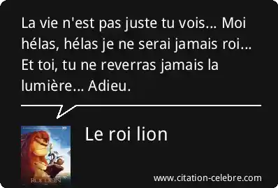 La vie n'est pas juste tu vois... Moi hélas, hélas je ne serai jamais roi... Et toi, tu ne reverras jamais la lumière... Adieu.