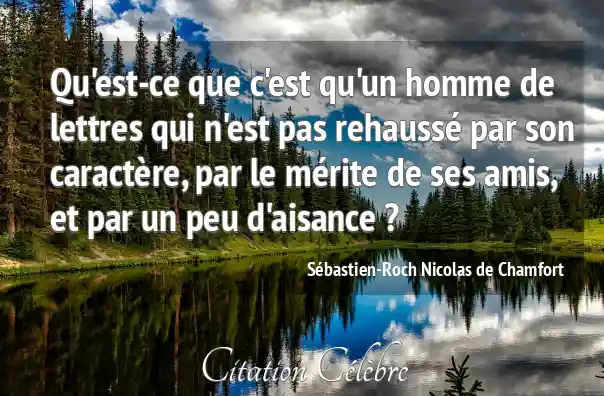 Qu'est-ce que c'est qu'un homme de lettres qui n'est pas rehaussé par son caractère, par le mérite de ses amis, et par un peu d'aisance ?