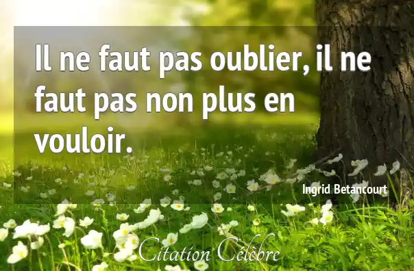 Il ne faut pas oublier, il ne faut pas non plus en vouloir.