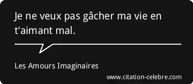 Je ne veux pas gâcher ma vie en t'aimant mal.