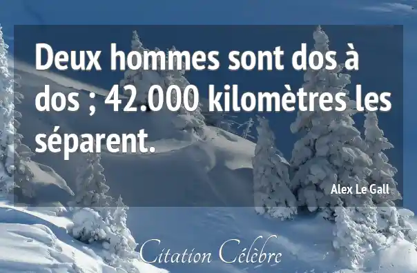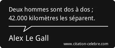Deux hommes sont dos à dos ; 42.000 kilomètres les séparent.