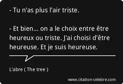 - Et bien... on a le choix entre être heureux ou triste. J'ai choisi d'être heureuse. Et je suis heureuse.