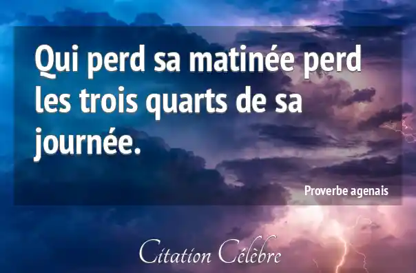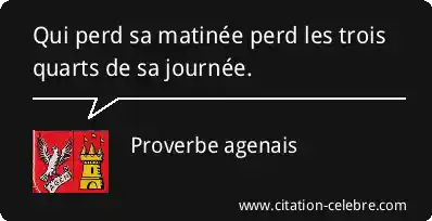 Proverbe  Agenais Journee : Qui perd sa matinée perd les trois quarts de sa...