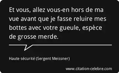 Et vous, allez vous-en hors de ma vue avant que je fasse reluire mes bottes avec votre gueule, espèce de grosse merde.