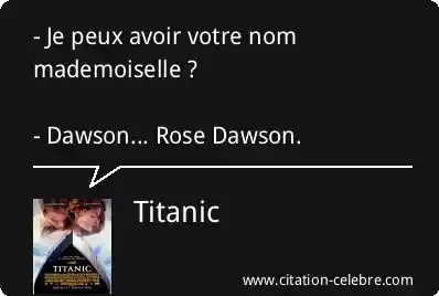 - Je peux avoir votre nom mademoiselle ? - Dawson... Rose Dawson.