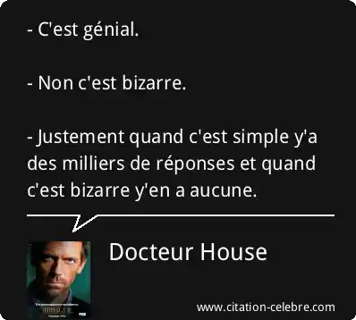 - C'est génial. - Non c'est bizarre. - Justement quand c'est simple y'a des milliers de réponses et quand c'est bizarre y'en a aucune.