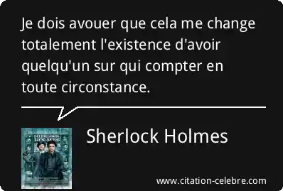 Je dois avouer que cela me change totalement l'existence d'avoir quelqu'un sur qui compter en toute circonstance.
