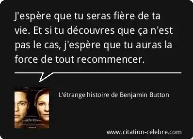 J'espère que tu seras fière de ta vie. Et si tu découvres que ça n'est pas le cas, j'espère que tu auras la force de tout recommencer.