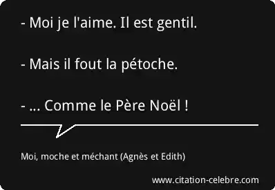 - Moi je l'aime. Il est gentil. - Mais il fout la pétoche. - ... Comme le Père Noël !