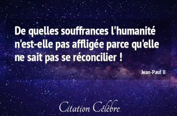 De quelles souffrances l'humanité n'est-elle pas affligée parce qu'elle ne sait pas se réconcilier !