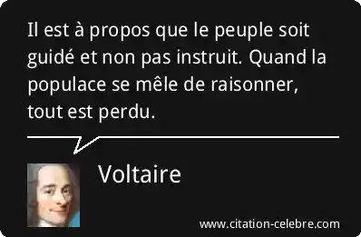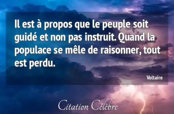 Il est à propos que le peuple soit guidé et non pas instruit. Quand la populace se mêle de raisonner, tout est perdu.