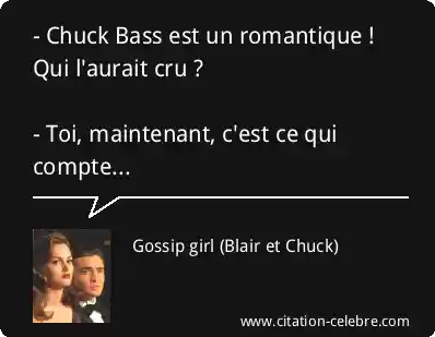 - Chuck Bass est un romantique ! Qui l'aurait cru ? - Toi, maintenant, c'est ce qui compte...