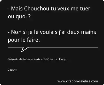 - Mais Chouchou tu veux me tuer ou quoi ? - Non si je le voulais j'ai deux mains pour le faire.
