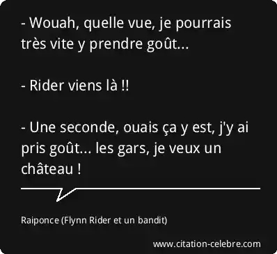 - Wouah, quelle vue, je pourrais très vite y prendre goût... - Rider viens là !! - Une seconde, ouais ça y est, j'y ai pris goût... les gars, je veux un château !