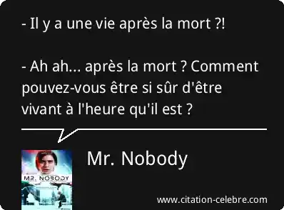 - Il y a une vie après la mort ?! - Ah ah... après la mort ? Comment pouvez-vous être si sûr d'être vivant à l'heure qu'il est ?