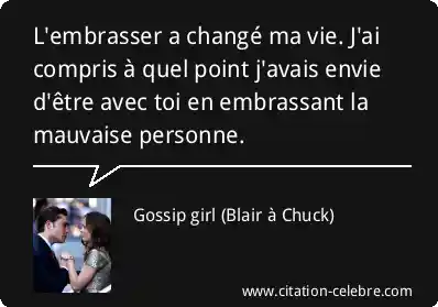 L'embrasser a changé ma vie. J'ai compris à quel point j'avais envie d'être avec toi en embrassant la mauvaise personne.