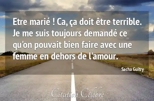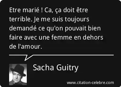 Etre marié ! Ca, ça doit être terrible. Je me suis toujours demandé ce qu'on pouvait bien faire avec une femme en dehors de l'amour.