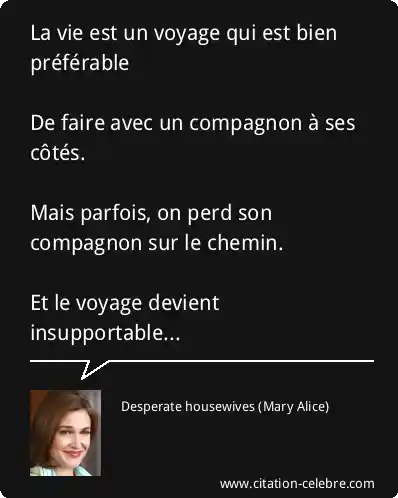 La vie est un voyage qui est bien préférable De faire avec un compagnon à ses côtés. Mais parfois, on perd son compagnon sur le chemin. Et le voyage devient insupportable...