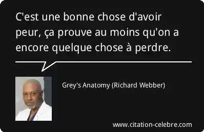 C'est une bonne chose d'avoir peur, ça prouve au moins qu'on a encore quelque chose à perdre.