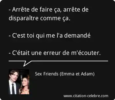 - Arrête de faire ça, arrête de disparaître comme ça. - C'est toi qui me l'a demandé - C'était une erreur de m'écouter.