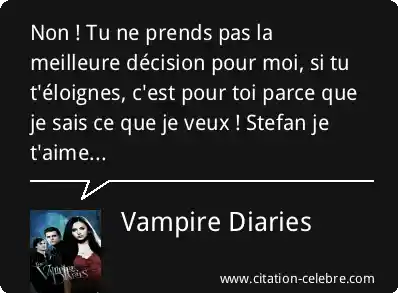 Non ! Tu ne prends pas la meilleure décision pour moi, si tu t'éloignes, c'est pour toi parce que je sais ce que je veux ! Stefan je t'aime...