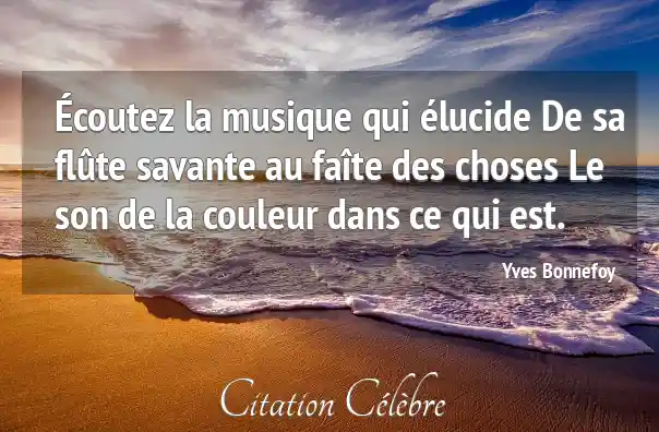 Écoutez la musique qui élucide De sa flûte savante au faîte des choses Le son de la couleur dans ce qui est.
