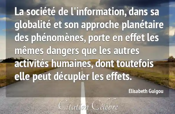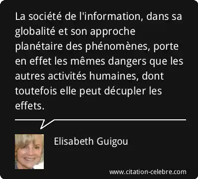 La société de l'information, dans sa globalité et son approche planétaire des phénomènes, porte en effet les mêmes dangers que les autres activités humaines, dont toutefois elle peut décupler les effets.