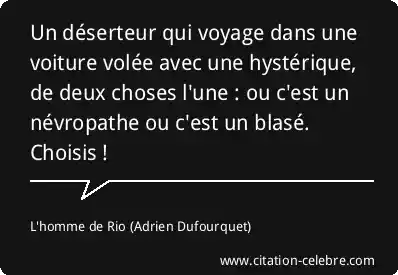 Un déserteur qui voyage dans une voiture volée avec une hystérique, de deux choses l'une : ou c'est un névropathe ou c'est un blasé. Choisis !
