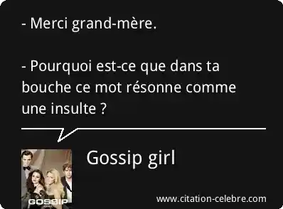 - Merci grand-mère. - Pourquoi est-ce que dans ta bouche ce mot résonne comme une insulte ?