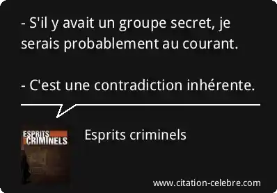 - S'il y avait un groupe secret, je serais probablement au courant. - C'est une contradiction inhérente.